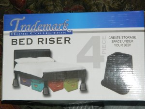 When the nervous laughter, now emanating from both of us, finally died down, I suggested that Liz write a short story about a woman that keeps buying more and more furniture risers. She starts with a dresser, or something, that she wishes was taller, then the chair next to the dresser, then the kitchen table, and the dining room table, and the cat box, and then it would get sort of Barthelmeean, or something, or like magical realism, and the woman would put furniture risers beneath every piece of furniture and appliance, including the refrigerator, and then beneath her pets, and her spouse and children, and the house itself, and then her neighbors, everyone but her, and her neighbor’s houses, and the White House, and beneath the President and his Cabinet, and the Great Wall of China, and the Moon, and then…I don’t know. I don’t know how it would end.